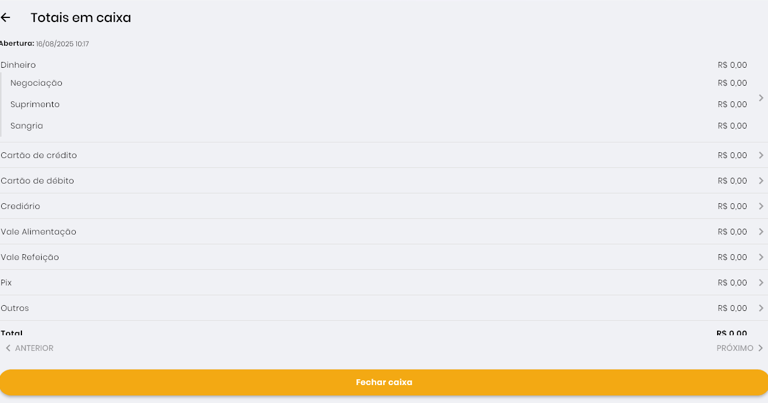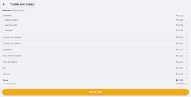 Importante: Os totais em caixa serão zerados após o fechamento.